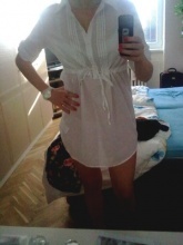 Délka 79cm a přes prsa 46cm. 100% bavlna. Cena 300 kč vč. poštovného. Omlouvám se za vypůjčené fotky