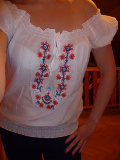 0Nová, nenošená bílá halenka s ozdobnou výšivkou. Rukávy a spodní lem jsou do gumy. Sedne na M/L. Rozměry dodám na požádání. Moje cena: 250 Kč vč. poštovného.