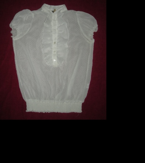 Nikdy nenošená bílá průhledná halenka. Na sobě má jemné puntíky. Vepředu volánky.