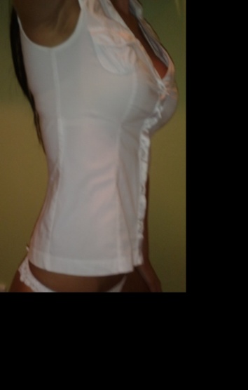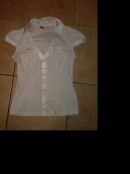 Prodám minimálně nošenou bílou halenku se saténovými lemy - u knoflíků, límeček a rukávů.