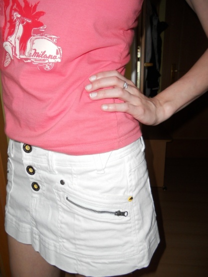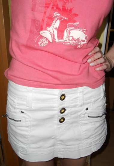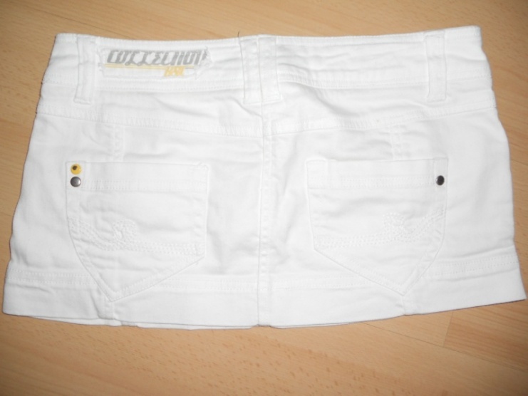 Prodám málo nošenou jeansovou bokovou minisukni, lehce do áčkového střihu.