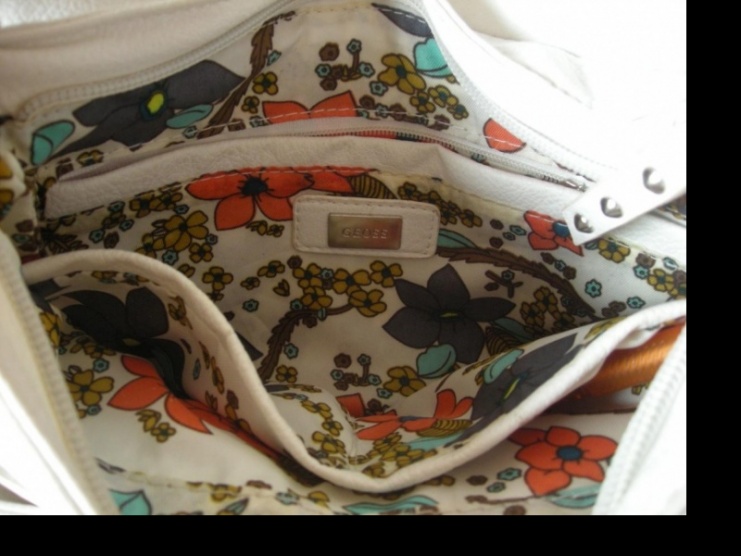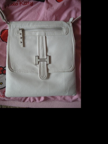 Prodám bílou kabelku Geoss. Párkrát nošená, zezadu odřená a trochu špinavá od džínů, ale při běžném nošení to není vidět. Cena 150 Kč včetně pošty.