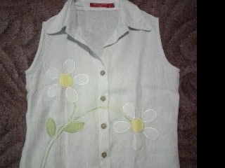0Nabízím nošenou, ale ve skvělém stavu, bílou lněnou košili s aplikací květiny. Značka Banana Split. Bez rukávů, délka 46 cm. Na léto velmi příjemná. Cena 200,- včetně pošty.