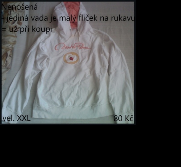 Prodám novou, jen jednou nošenou mikinu, malý flíček ani nejde vidět ale už tam byl při koupi. Cena 80,- + poštovné