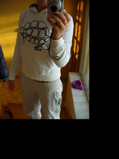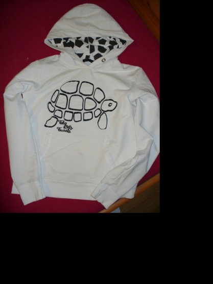 Prodám bílou neznačkovou mikinu s želvou.Jediná vada na mikině jsou malé žmolečky na želvě. Prodám za 100,- + poštovné.