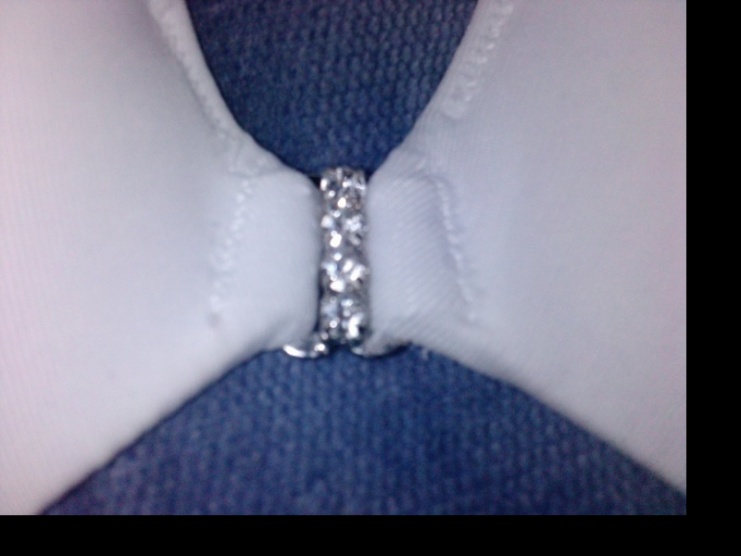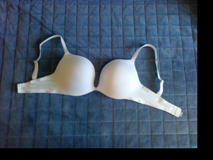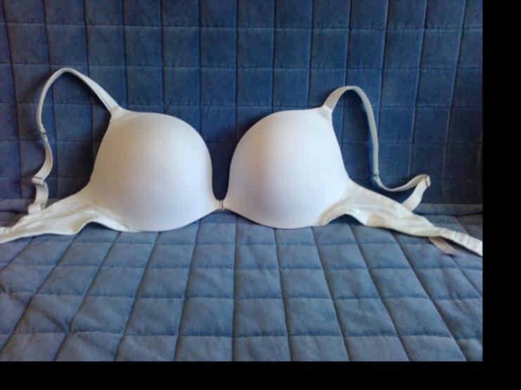 Bílá bezešvá podprsenka La Senza, koupená ve Velké Británii, s push-up efektem, vystužená, košíčky spojeny úzkou sponou s kamínky. Část ramínek vyměnitelná. Podprsenka byla nošená, je nepoškozená a vypraná.