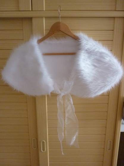 Prodám tuto pelerínu zakoupenou ve svatebním saloně. Je sněhově bílá. Velikost univerzální. Dává se kolem ramen a zavazuje se na mašličku. Použita jednou na polonézu. Cena 500Kč vč. poštovného. PC: 800Kč.