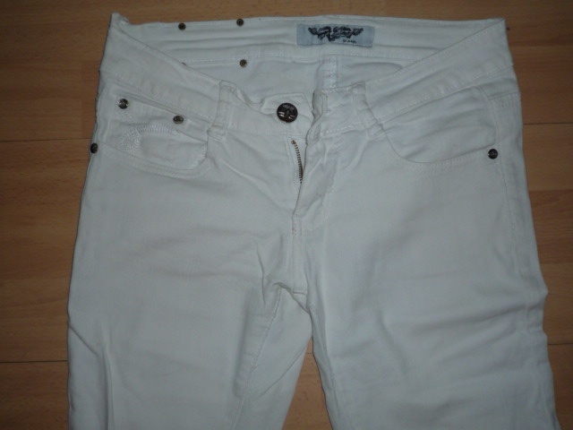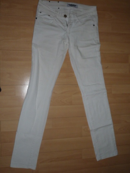 Prodám krásné bíle rifle, velikosti 38/M, ale já mám S a jsou mi taky krásně. Bohužel, jsou to moje asi třetí bílé, tak proto prodávám, měla sem je na sobě dvakrát, takže jsou v perfektním stavu. Pc: 899 nyní: 300kč+50Kč poštovné.