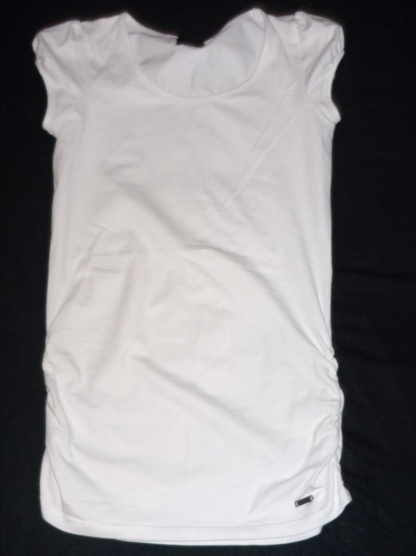 0Bílé delší triko Reserved s nařasenými rukávy, dá se nosit i k legínám, má velmi příjemný elastický materiál.Na sobě jsem ho měla pouze jednou.