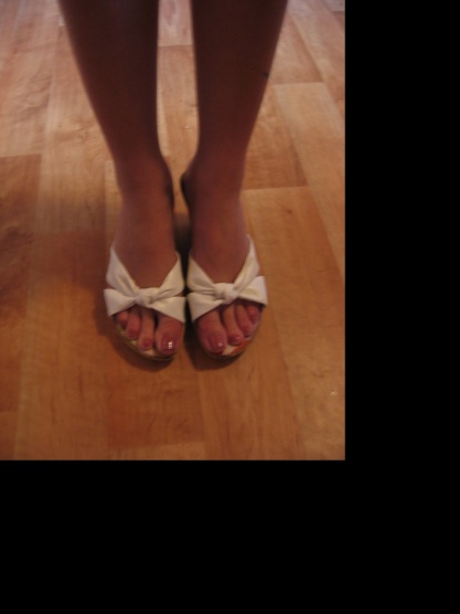 Prodám nošené bílé dřeváky na klínku z Deichmanna.