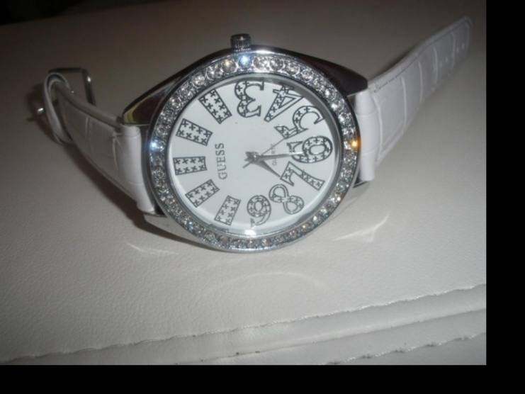 Prodám tyto nové bílé Guess hodinky. Velký ciferník 4,4 cm. Osázen kamínky. Zřejmě nebudou originál, ale jsou moc pěkné.