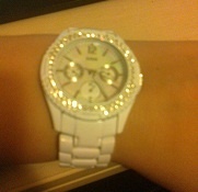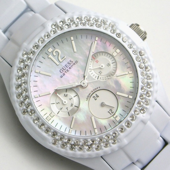 Ahoj holky, uvažuji o prodeji těchto krásných hodinek Guess, typ Candy White G12543L, více fotek si můžete vygooglovat.Popis: Ciferník Mother of Pearl, posetý kamínky Swarovski, analog, kvalitní strojek qartz, řemínek bílý - potažená nerezová ocel, multifunkční ciferník (ukazují den, datum, část dne), voděodolné.Velikost ciferníku cca 39mm.Součástí je krabička s polštářkem, zbývající kousek pásku (jsou zkrácené), návod. Nošené na střídačku s jinými, žádný kamínek nechybí, plně funkční, akorát z boku je sem tam oprýskaný ten bílý potah ( je to menší než 1mm), na fotkách to ani nejde vidět, taktéž při běžném nošení, ale raději upozorňuji. Stály mě necelých 5tis., na ceně jsem ochotná se domluvit, SZ.