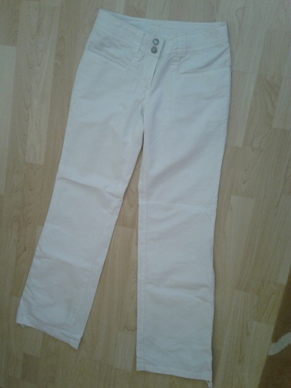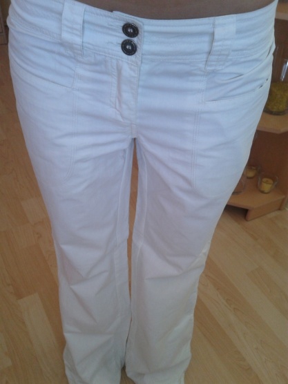 Nabízím velmi příjemné lehké kalhoty (typovala bych to na bavlnu, ale cedulku jsem ustřihla). Jsou širšího rovného střihu. Délka 103cm, v pase 39cm, boky 45cm, šířka nohavice 24cm. Kapsy na zadku jsou falešné. V pěkném stavu.