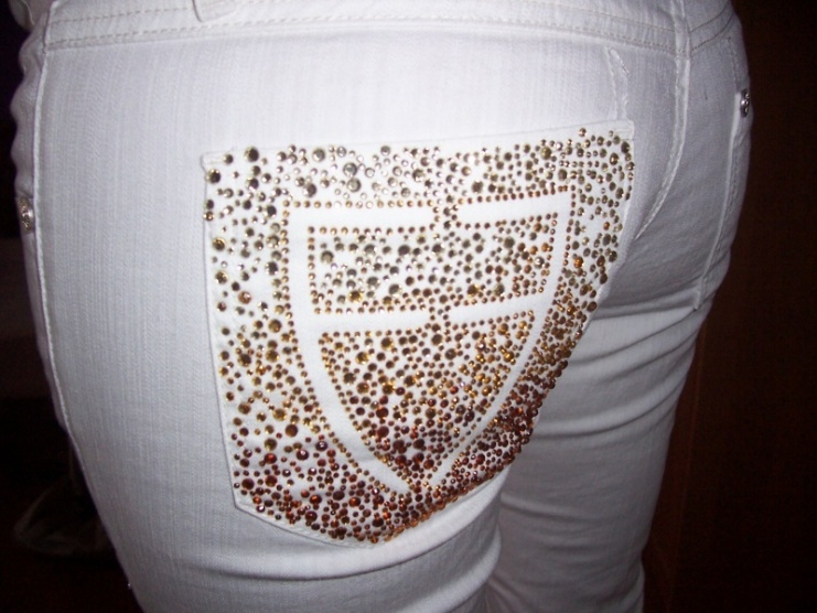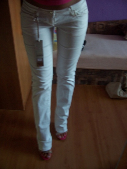 Prodám tyto luxusní bílé džíny Fracomina, prodávají se v dieselu, kupované za 2450 Kč, jsou zcela nové, vč. visaček. Krásné prošívání, zadní kapsa je zdobena kamínky ve tvaru F a obráceného F jako Fracomina (zlatými, oranžovými a žlutými). Opravdu jedinečný kousek. Nyní nabízím za 1499 Kč vč. doporučené pošty
