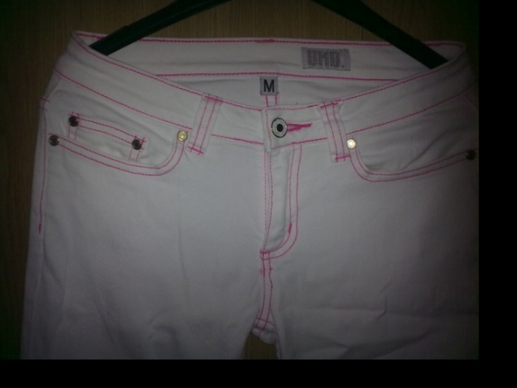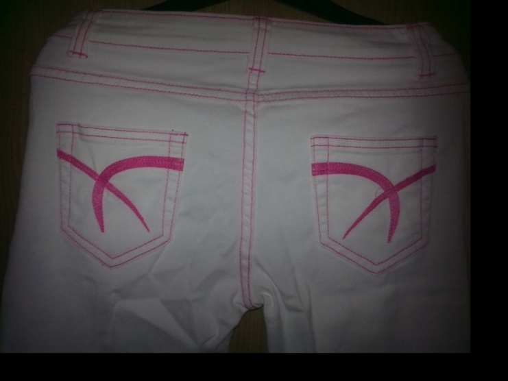 Na jedné nohavici dole je malý flíček (viz foto), který není při běžném nošení vidět a u zipu je utržený držáček na zip.