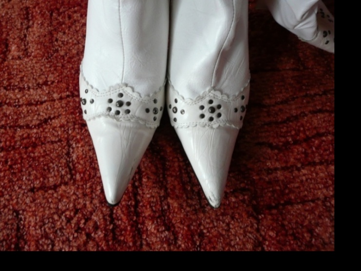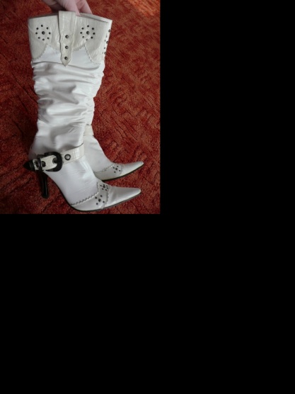 Prodám krásné bílé kozačky na jehle a do špičky, vše viz. podrobné foto. Velikost uvedena 36,ale já mám 37 a jsou mi dobře,takže na 37 v pohodě. Vevnitř jsou vyteplené, jsou perfektní k džínové sukni nebo k úzkým džínům. Zdobený podpatek a přezka, podpatek vysoký cca 10cm,ale jsou opravdu pohodlné, chodí se na nich pěkně, měla jsem je na sobě asi 2x-3x, je vidět,že podrážka je neopotřebovaná, bohužel jsou ale u nás takové teréní podmínky na vesnici,že je vůbec nevyužiji a proto posílám dál