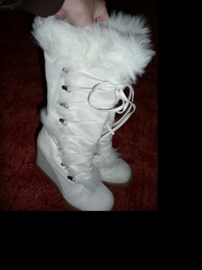 Prodám úplně nové semišové bílé kozačky na klínku z USA, nesedí mi velikost, jsou mi větší a širší v dole v noze