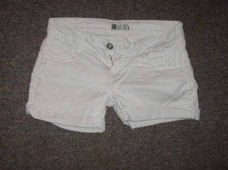 džínové,nenošené,velikost M,koupila jsem je takhle ohrnuté,ale dají se shrnout a dole mají roztřepený lem 299 + poštovné