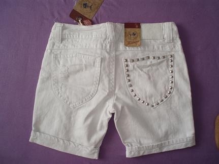 Bílé riflové kraťásky značky Fishbone. Zcela nové, včetně visaček. Originálně trhané. Jsou mi bohužel velké. Kapsy zdobené.