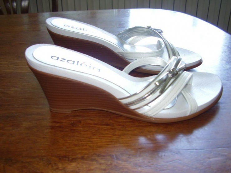 Prodám nové, krásné bílé pantofle Azalea se stříbrnou mašličkou, a s platformou v.7,5cm za 300 kč včetně pošty... Jedenkrát nošené, proto si dovoluji psát nové. 100% stav