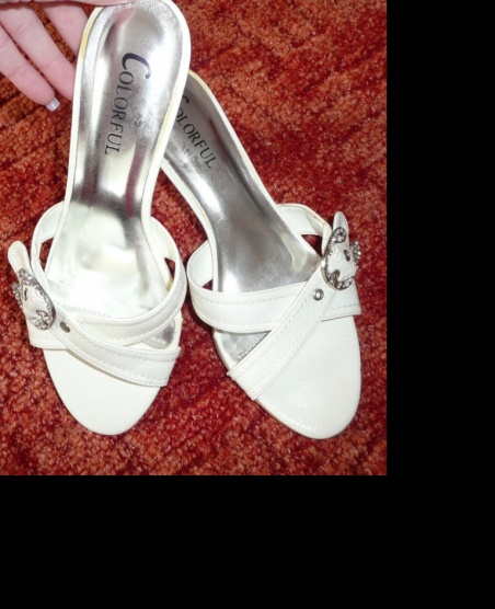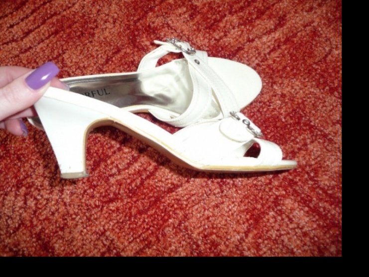 Prodám letní bílé pantoflíčky se štrasovou sponkou, nošené 2x, jsou v pořádku, jen je to vidět na podpatcích (a podrážce),zespoda asi ve výšce 1cm jsou poškrábané,ale na noze to vidět není. Velikost 36.Výška podpatku cca 5cm.