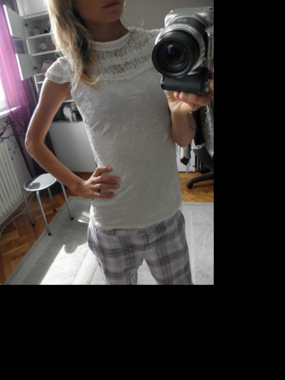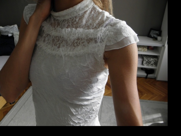 0Tričko je lemované bílou krajkou a pomačkaného stylu, který drží i po vyprání.. Je příjemné na dotek a přilnavé na tělo..