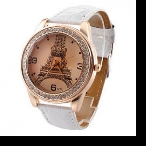 3Zcela nové hodinky s Eiffelovkou, bílý pásek, ciferník v trendy barvě růžového zlata. Jsou krásné a samozřejmě plně funkční