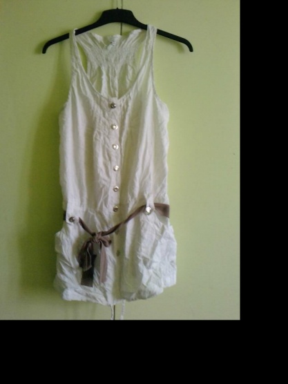 0Nabízím bílé šaty značky F&F, jsou na knoflíčky s kamínky, vzádu lemování Boxer, možnost pásečku uprostřed, jsou na něj úchyty. A dole se dají stáhnout.