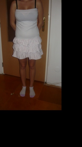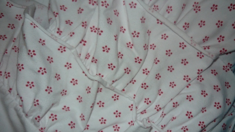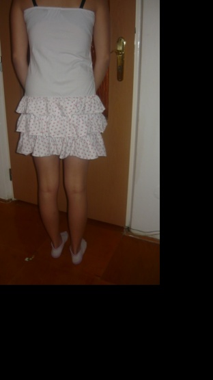 Sukýnka je s červenými kytičkami.Velikost odpovídá.Skoro vůbec nenošené,v perfektním stavu.120-, včetně doporučené pošty