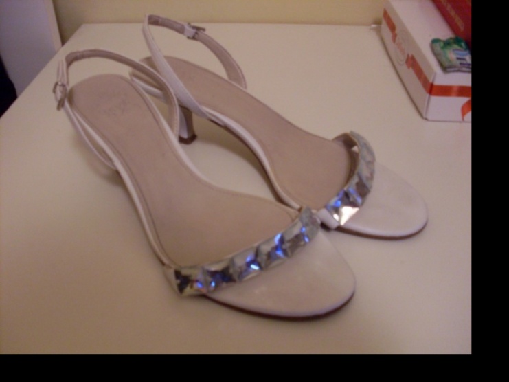 Prodám nošené bílé páskové střevíčky z Deichmanna, s kamínkovým páskem.