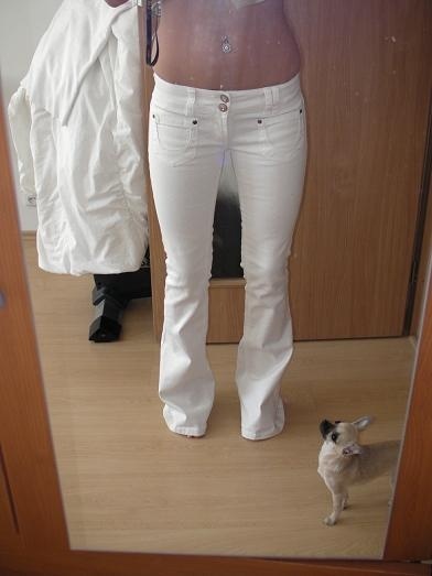 0Jednou nošené bílé kalhoty s rozšířenými nohavicemi. Velikost odpovídá XS z Terranovy. Top stav. PC 600,- prodávám za 400Kč + 50Kč poštovné