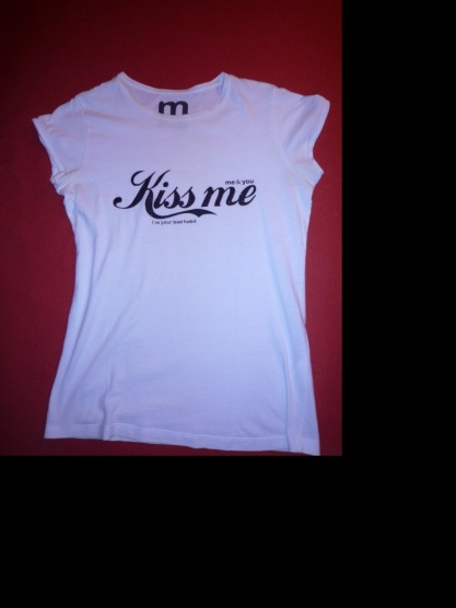 Bílé tričko s nápisem, , Kiss me, ,
