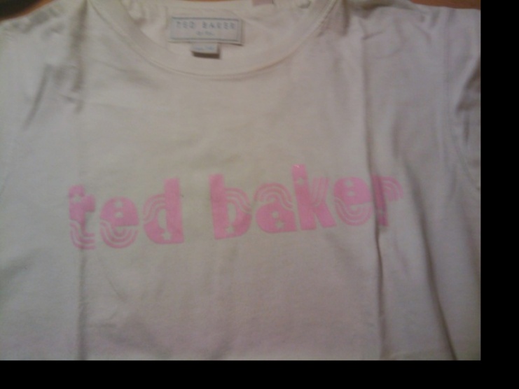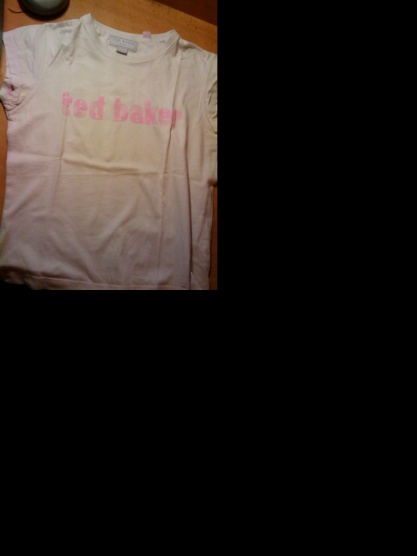 Bílé tričko s růžovým nápisem od značky Ted Baker Girl-nošené prodám za 79Kč včetně pošty nebo za něco vyměním