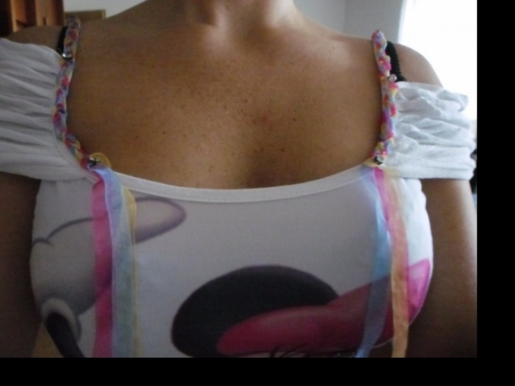 Překrásné roztomilé tričko. Asi 2x oblečené,ale necítím se v něm. Koupeno v zahraničí, velice originální kousek. Ozdoby z čirých kamínků, zadní díl zdoben nápisem ze zlatých kamínků, pastelové stuhy na rukávcích, střih mírně do A (přes bříško volnější). Lehoučký materiál. Vel uvedena M, ale odpovídá S - L.
