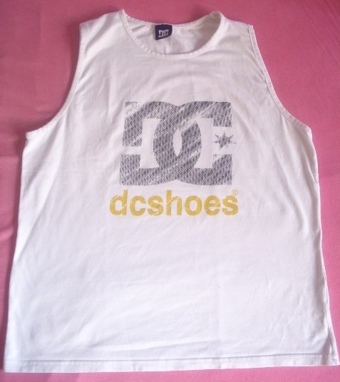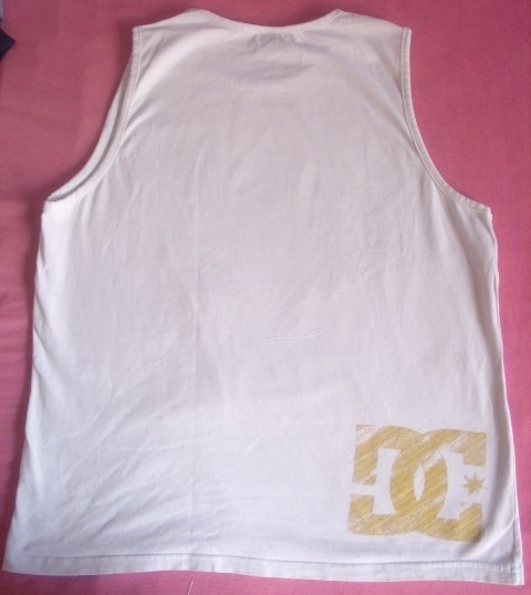 Bílé tričko/tílko DC. Je párkrát nošené, ale není to vůbec poznat, vypadá stále, jako nové. Na přední straně logo a na zadní straně je menší. Velikost je psaná M, ale podle mě sedne i L/XL.