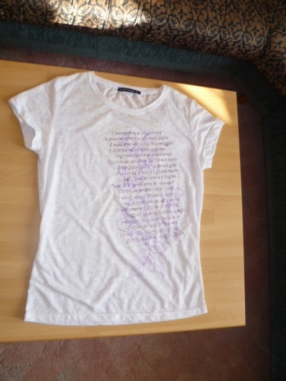 0Tričko je nošené, místy průhledné. Nápis je lesklý. Prodám za 100 Kč včetně poštovného. Řekla bych, že vel. moc neodpovídá, spíš to bude M.