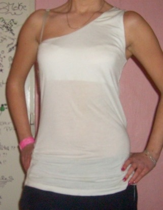 na jedno rameno,pod prsama jakoby podšívka jinak lehce průhledně
