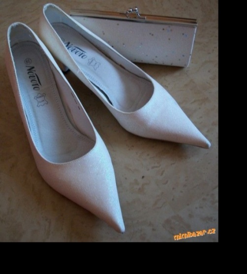 Bílé, lehce třpytivé lodičky na stabilním podpatku, velmi pohodlné, vel. 39, bohužel jsou mi větší (standartně nosím 38, ale tyto jsem musela mít), proto nabízím dále.
