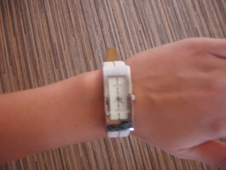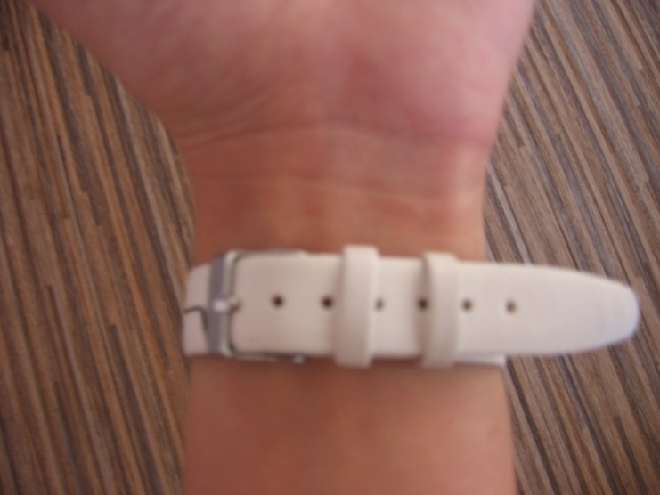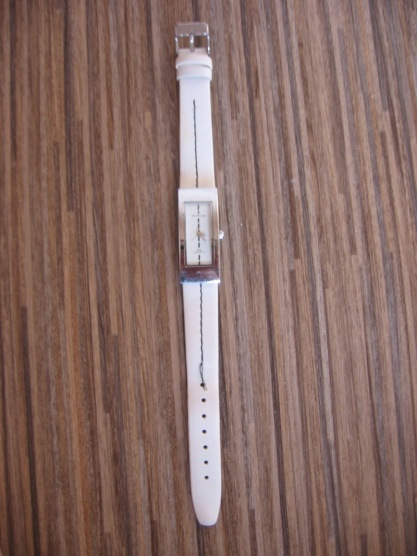Prodám minimálně nošené uzoučké hodinky Scream s bílým páskem, prošívaný černou nití.