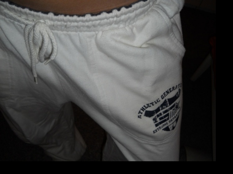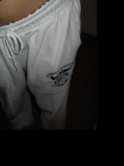 Nošené, velmi pohodlné volné tepláčky. Nízko posazeny sed, velikost M/L jsou opravdu dost volné. v pase na gumu a šňůrky, v klidu 35cm. délka 93cm.