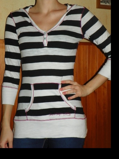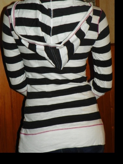 Nabízím toto krásné černo-bílé pruhované tričko značky Timeout s kapucí, vepředu dva knoflíčky