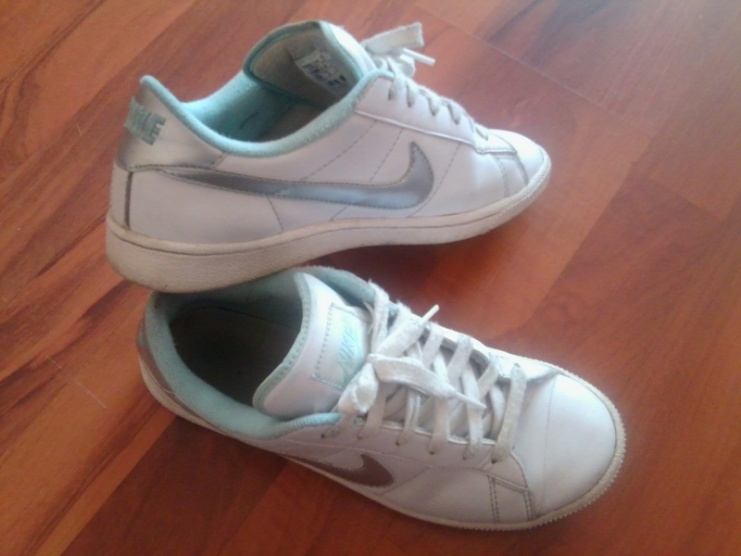 Bílé botasky se světle tyrkysovými a šedými dolpňky. Skvělý stav, velikost 38.
