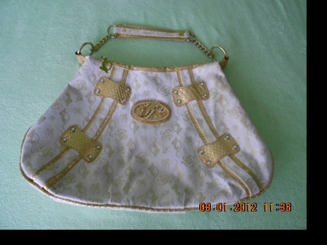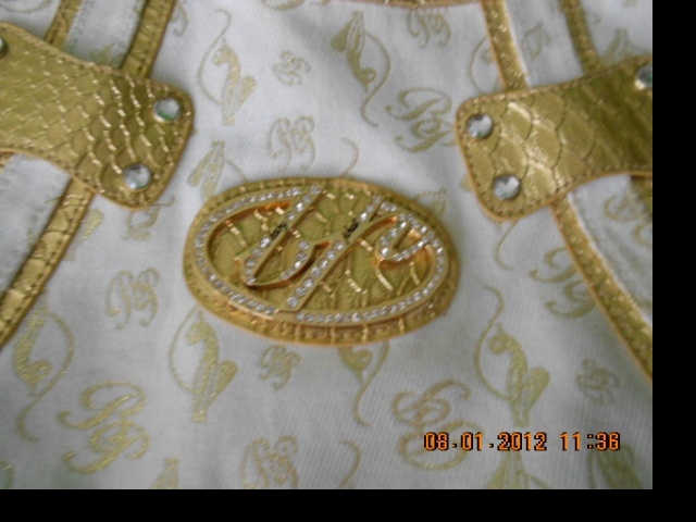 Prodám bílo-zlatou kabelku Baby Phat. Kabelka je nošená, nikde není rozrhaná, ale místy je ušpiněná od prachu, takže je potřeba ji vyprat. Pořizovací cena byla přes 2500,- kč, už ji nevynosím