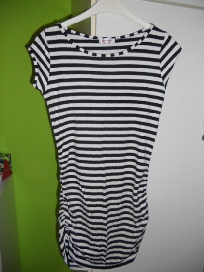 Nabízím proužkovanou bíločernou tuniku. Velikost je psaná L, ale je to spíše M.