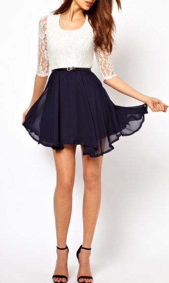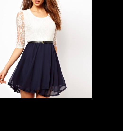 Fotka zkresluje, sukně je modrá a vršek bílý