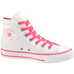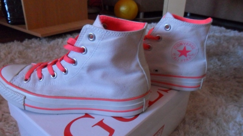 krásné plátěné bílé tenisky značky converse s neonovými kaničkami, vzaté párkrát, jako nové