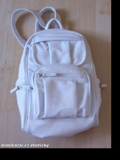 Nabízím nový batůžek - bílý, koženkový. Spousta kapes, nastavitelné uši. Poštovné a balné 70 Kč.