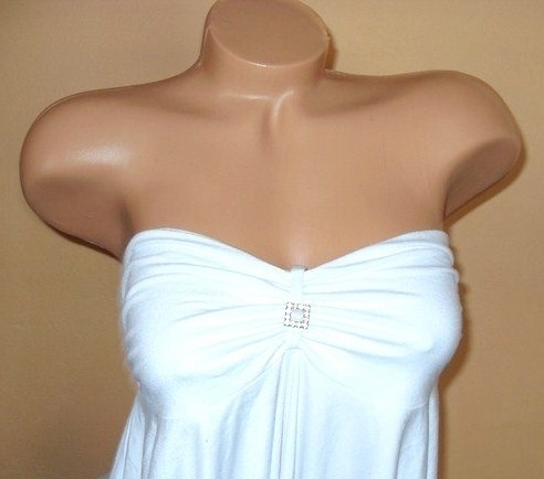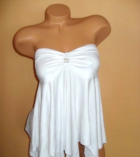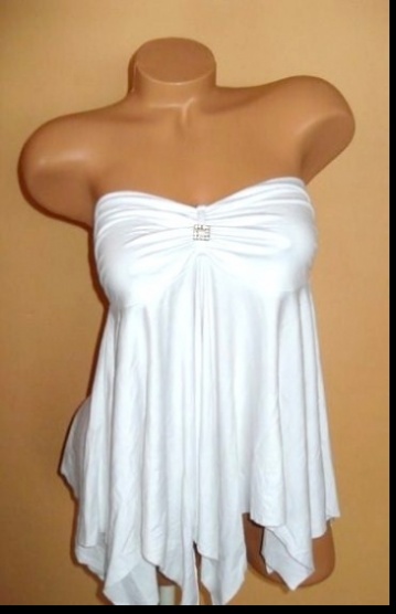0Prodám nový, krásný bílý dámský pružný cípatý top bez ramínek za 250 kč včetně pošty