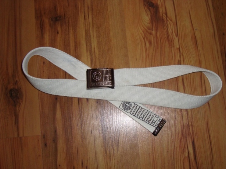 Prodám bílý textilní pásek Nugget, délka 101 cm. Na rubové straně trošku modrý od jeansů, na rubu spony je otvírák na pivo, tak je trochu poškrábaný. Při nošení ani jedna vada nejde vidět, je to na druhé straně. Za pásek bych chtěla 150 Kč. Poštou neposílám, pouze osobní předání v Brně.