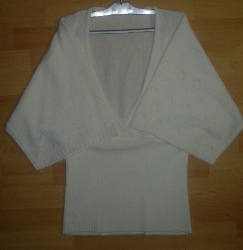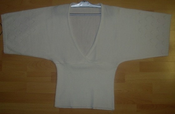 Bílý svetr s výstřihem do 'V'. Má volné rukávy, působí velmi elegantně, je pohodlný. Měla jsem ho na sobě jednou, mám vícero svetrů a neunosím je. Barva je sněhově bílá, foťák mi nebere barvy